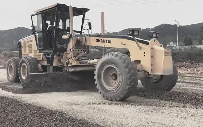 山東某國道道路建設(shè)項(xiàng)目施工,山推SG18-3平地機(jī)先后承擔(dān)了該工程的路基平整及后續(xù)路面修筑散布石子等物料的工作,施工方對(duì)山推平地機(jī)的施工效率和鏟刀更大調(diào)角范圍非常滿意,并對(duì)整個(gè)施工過程中山推平地機(jī)的維護(hù)便捷性和操作舒適性給予了稱贊,表示山推該款平地機(jī)是名副其實(shí)的道路施工利器。