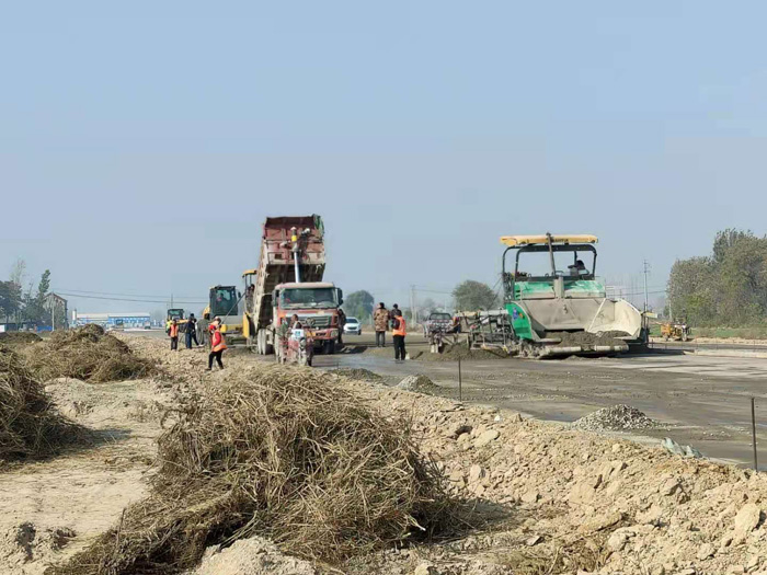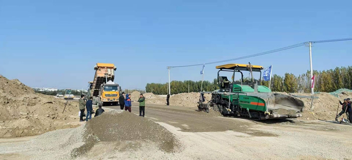在濰坊市昌樂縣某園區(qū)道路的施工現場,山推成套路面施工設備包括壓路機、攤鋪機等正有條不紊的進行水穩(wěn)層施工。山推設備質量可靠,高效穩(wěn)定,施工期間未出現任何問題,圓滿完成施工任務,縮短了整個施工周期,贏得了施工方的高度贊譽。