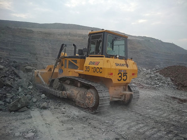 山推DH17推土機(jī)在印度某大型露天國(guó)有煤礦施工,該礦多巖石及土夾石工況,主要用于露天采煤工作平臺(tái)回填,以及爆破后采煤作業(yè)平臺(tái)碎石平整清理和短距離推運(yùn)等工作。工作強(qiáng)度大,三班倒每天工作15小時(shí)以上,環(huán)境溫度高,工地溫度高達(dá)50℃,持續(xù)約3個(gè)月。