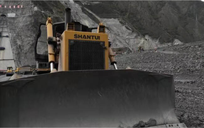 SD32推土機進行西南地區(qū)水電站壩體建設(shè),推土機將土、石子等松散物料進行推移堆積,壓路機壓平,澆注混凝土形成壩體。